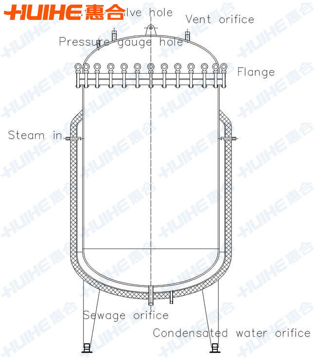 Cooking pot is a kind of stainless steel tank. It takes a certain pressure steam as heat source (also can choose electrical heating), owns characteristics such as large heating area, high thermal efficiency, uniform heating, short liquid material boiling time and easy to control the heating temperature. The inner pot using acid heat-resistant austenitic stainless steel manufacturing, equipped with pressure gauge and safety valve. It has beautiful outlook, easy installation, and convenient operation, is safe and reliable.