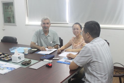 迪拜客戶(hù)需要定制數(shù)臺(tái)攪拌罐,來(lái)我公司參觀并與銷(xiāo)售人員進(jìn)行具體細(xì)節(jié)的洽談。