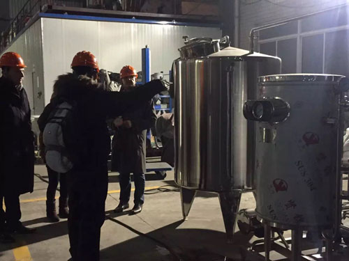 加拿大客戶前來(lái)驗(yàn)貨真空乳化機(jī)