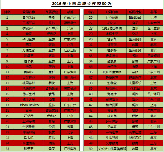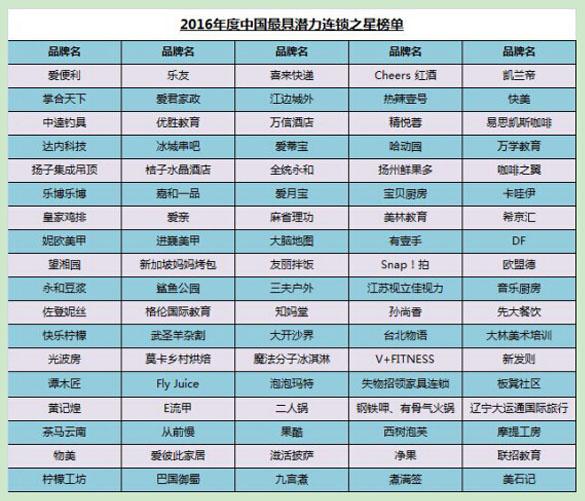Entrepreneur’s Franchise 500? 1978年在美國(guó)由Entrepreneur首次舉辦,至今已舉辦39屆,是全球連鎖行業(yè)投資參考權(quán)威。2008年創(chuàng)業(yè)邦將Entrepreneur’s Franchise 500? 獨(dú)家引入中國(guó),至今已成功舉辦8屆,旨在發(fā)現(xiàn)大中華地區(qū)更具良好成長(zhǎng)潛力的特許加盟連鎖企業(yè)。2015年11月,創(chuàng)業(yè)邦投資開店推出新版網(wǎng)站——開店邦。開店邦延續(xù)創(chuàng)業(yè)邦投資開店的優(yōu)良基因,致力于“讓天下沒有難開的門店”,通過(guò)平臺(tái)完善的生態(tài)鏈和綜合性服務(wù)能力,助力中國(guó)優(yōu)秀連鎖企業(yè)的高成長(zhǎng),打造更多消費(fèi)域的明星企業(yè)和行業(yè)標(biāo)桿。