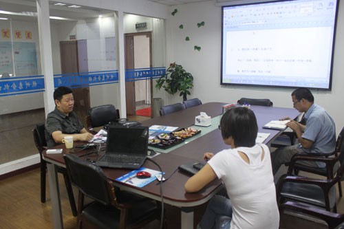 安徽客戶需要定制一套綠豆汁生產(chǎn)線設(shè)備,與銷售人員和工程師進行需求的洽談。