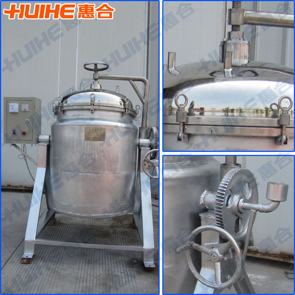 惠合生產(chǎn)的可傾式蒸煮鍋鍋體可任意旋轉(zhuǎn)90度,直到鍋中物料倒出,其材質(zhì)在客戶(hù)無(wú)特殊要求的情況下,內(nèi)外鍋體及可傾架等通常是采用不銹鋼304或316L制造的。