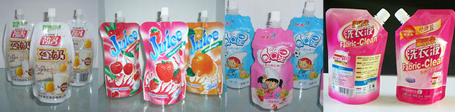 自立袋灌裝機適用于有嘴軟包裝袋自動定量灌液旋蓋用?梢怨嘧⑴D、果汁、飲料、純凈水、礦泉水等飲料品,也可灌注洗凈劑等日用品。